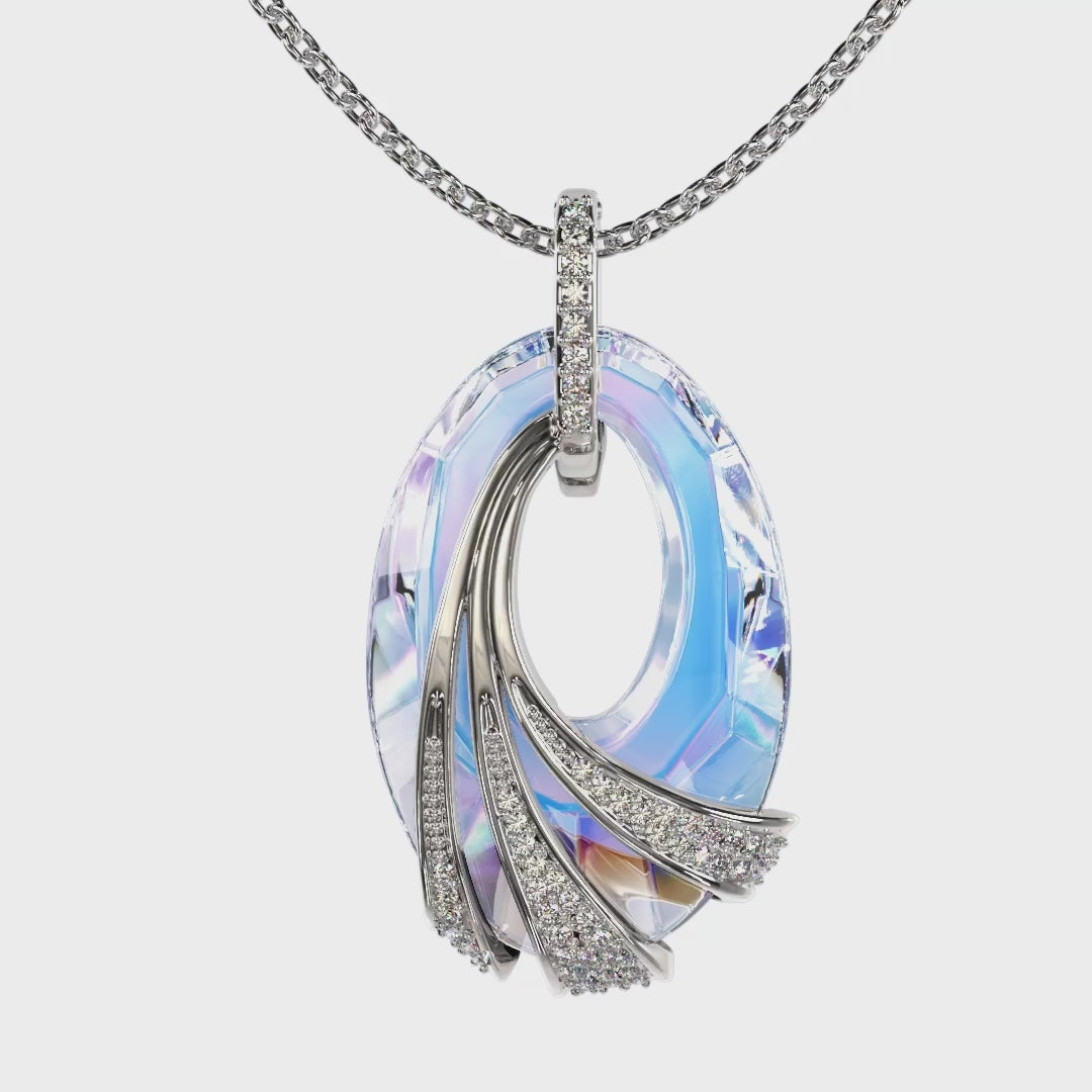 Do křišťálu jsme vložili slovo "moře"! Věnujte chvilku tomu, abyste nasáli všechen dechberoucí půvab tohoto okouzlujícího šperku. Jeho krása vás naprosto uchvátí... a to je teprve začátek. Neustále se měnící duha jiskřivého světla v nápadných pastelových odstínech, zachycená v nádherném křišťálu Aurora Borealis, který je navíc osázen více než 60 kameny Diamonisse! Tento přívěsek bude jistě přitahovat obdivné pohledy.